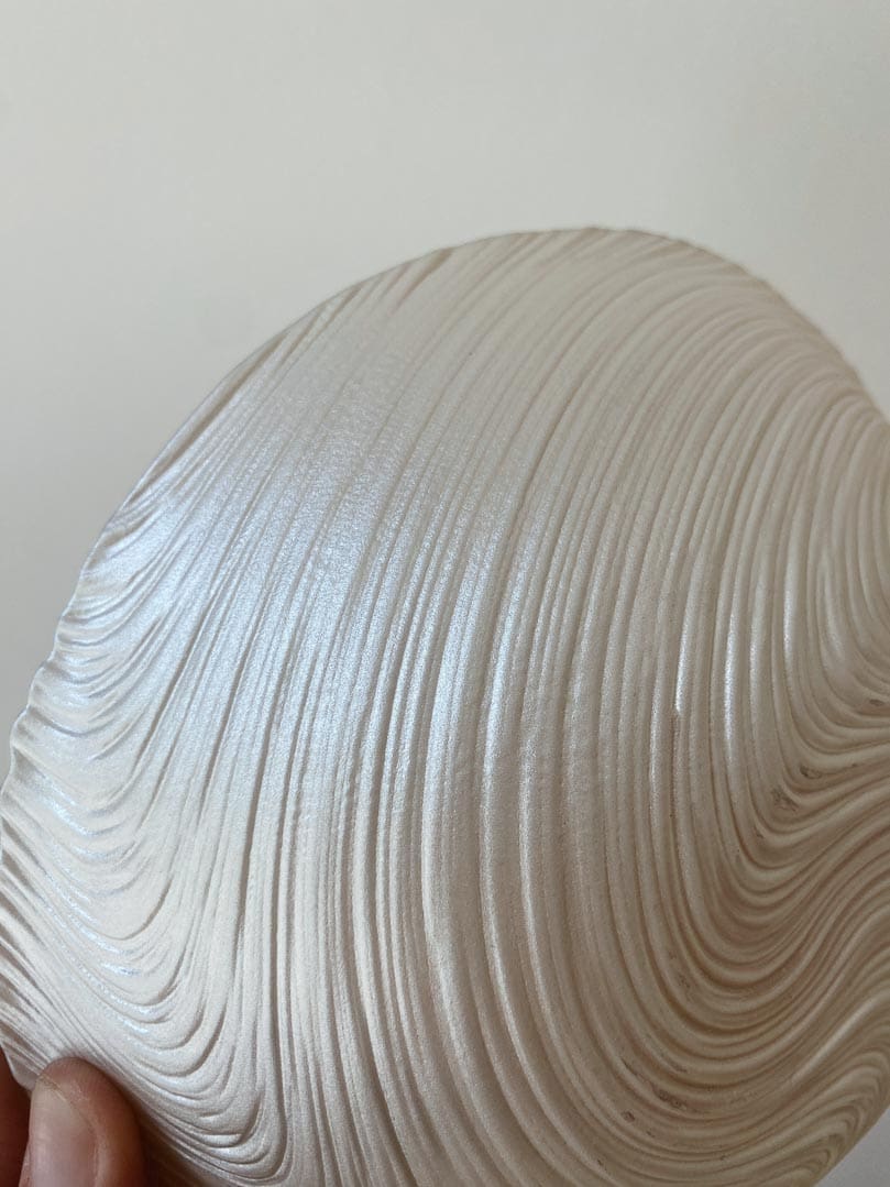 ”Ruff” på baksidan och blank och slät insida.