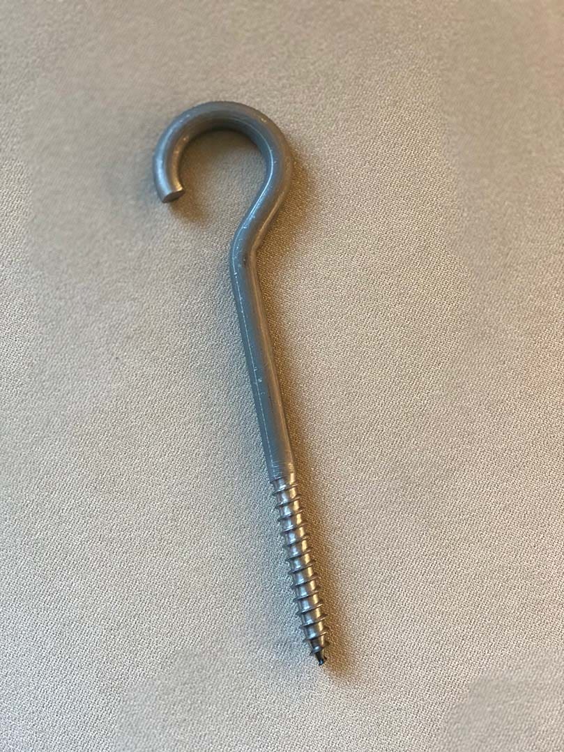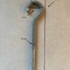 Längd: 20 cm. Diameter: 10 mm. Bredd krokhuvud: 5 cm. Bredd krokhuvudets invändiga mått: 3 cm.