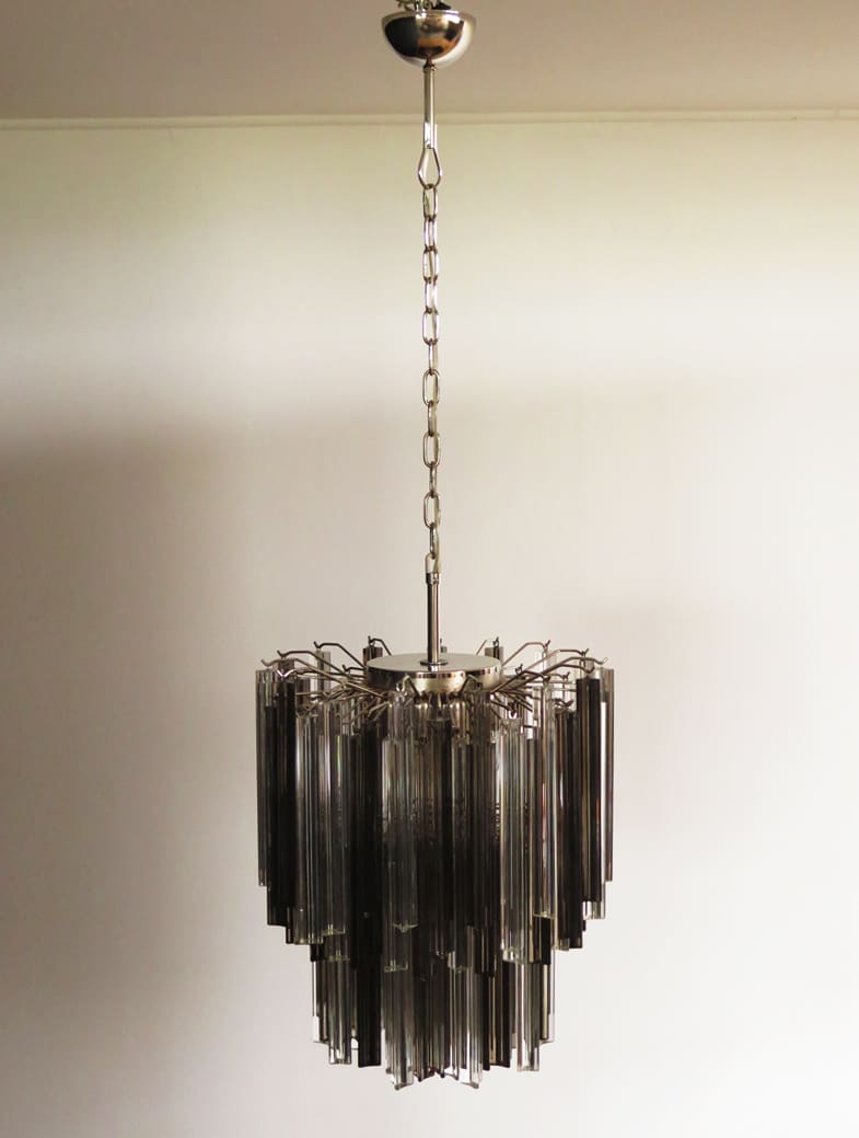 Murano ljuskrona – 107 prismer – Mörk Rökfärgad/Klar
