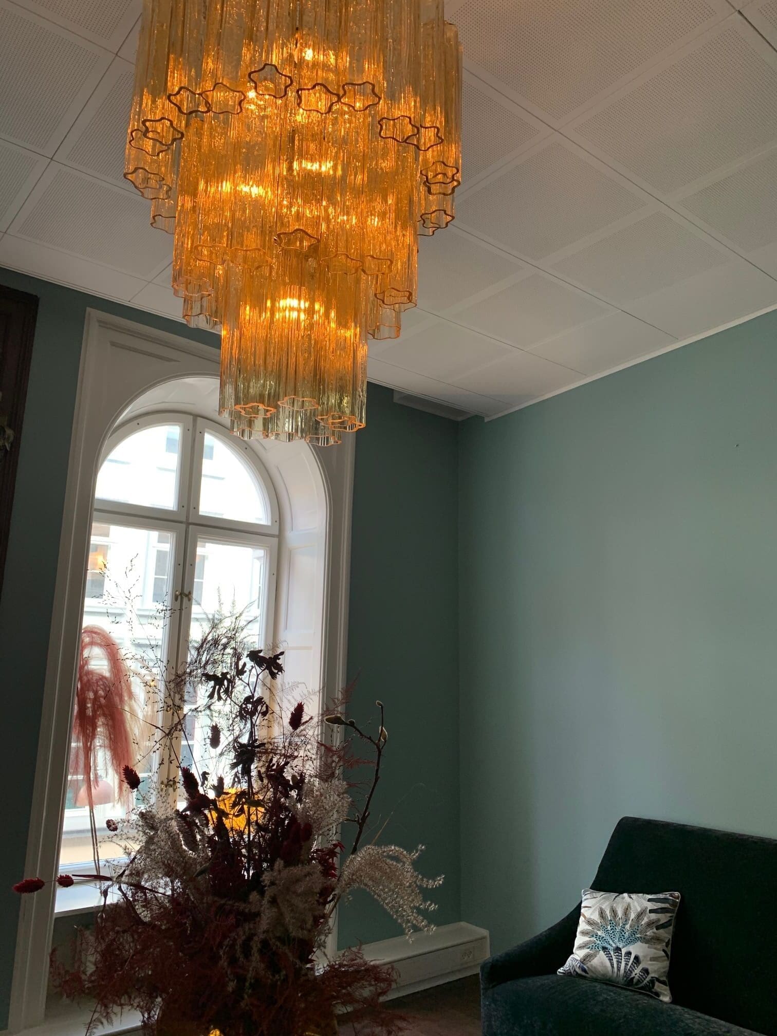 Murano ljuskrona – 48 rör – Klar bärnsten