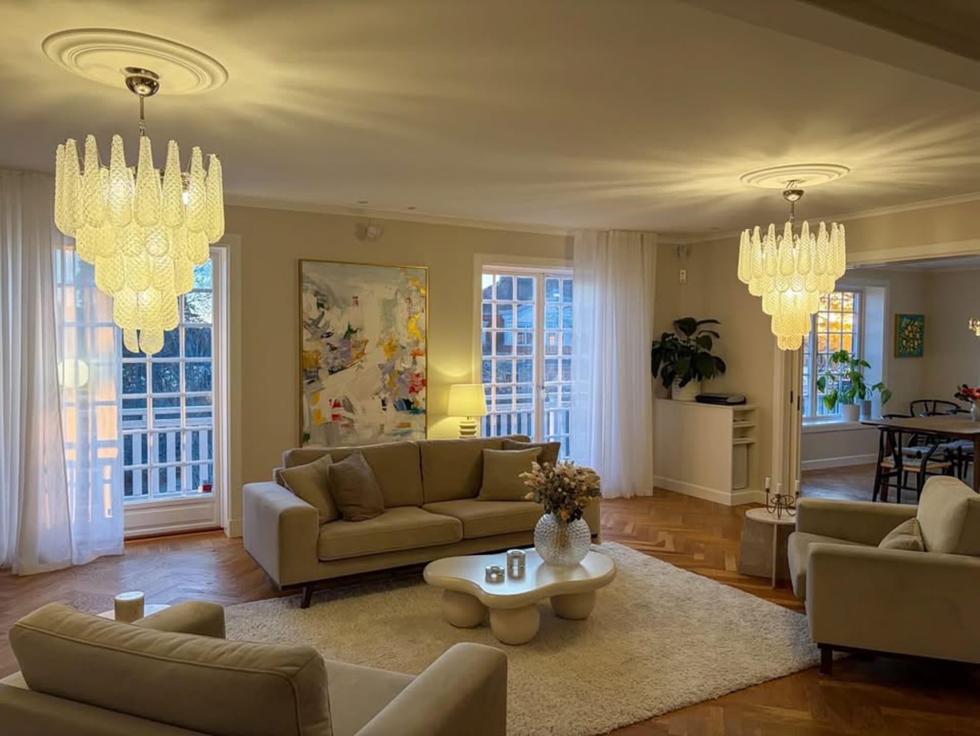 Glödlampor: 7 glödlampor: E14-dimension (ingår ej i försäljningen) fungerar också med dimmer.