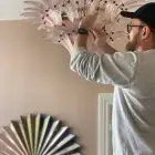 Se sista bilden där den hänger utan kedja (i pärlemorfärgat glas) i designern, Dea Kudibals privata hem.