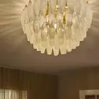 Lampan är en sann uppvisning i venetianskt hantverk och består av 84 handblåsta Murano-glas i vitt alabaster, vart och ett med mjuka, naturliga ådringar som ger lampan en lysande och skulptural karaktär.
