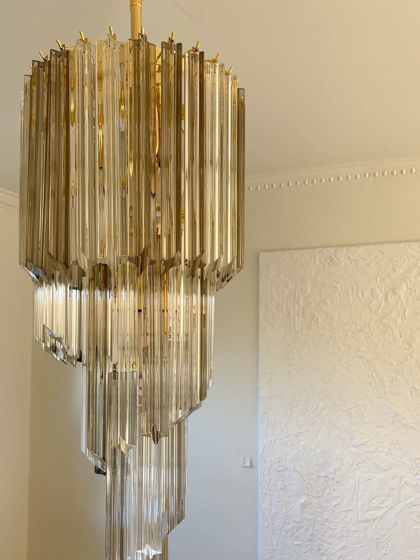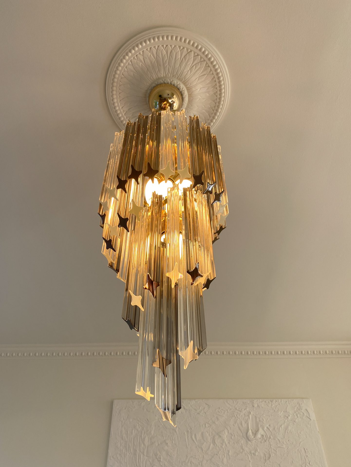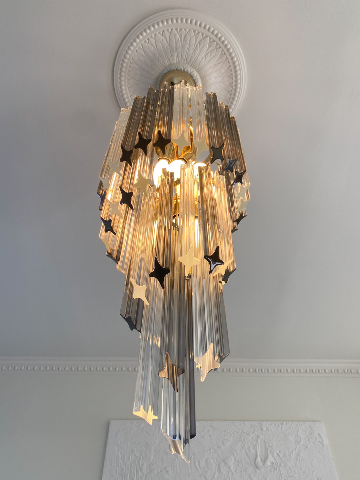 Murano ljuskrona – Spiral – 54 prismer – Rökig/Klar