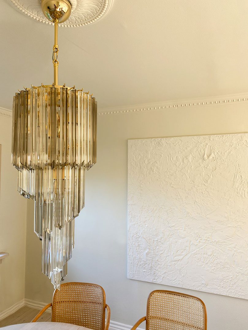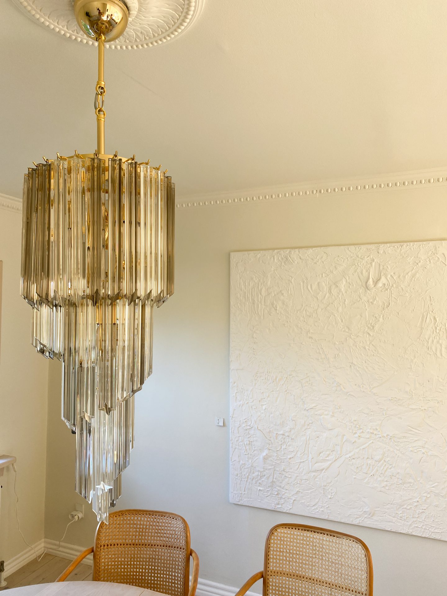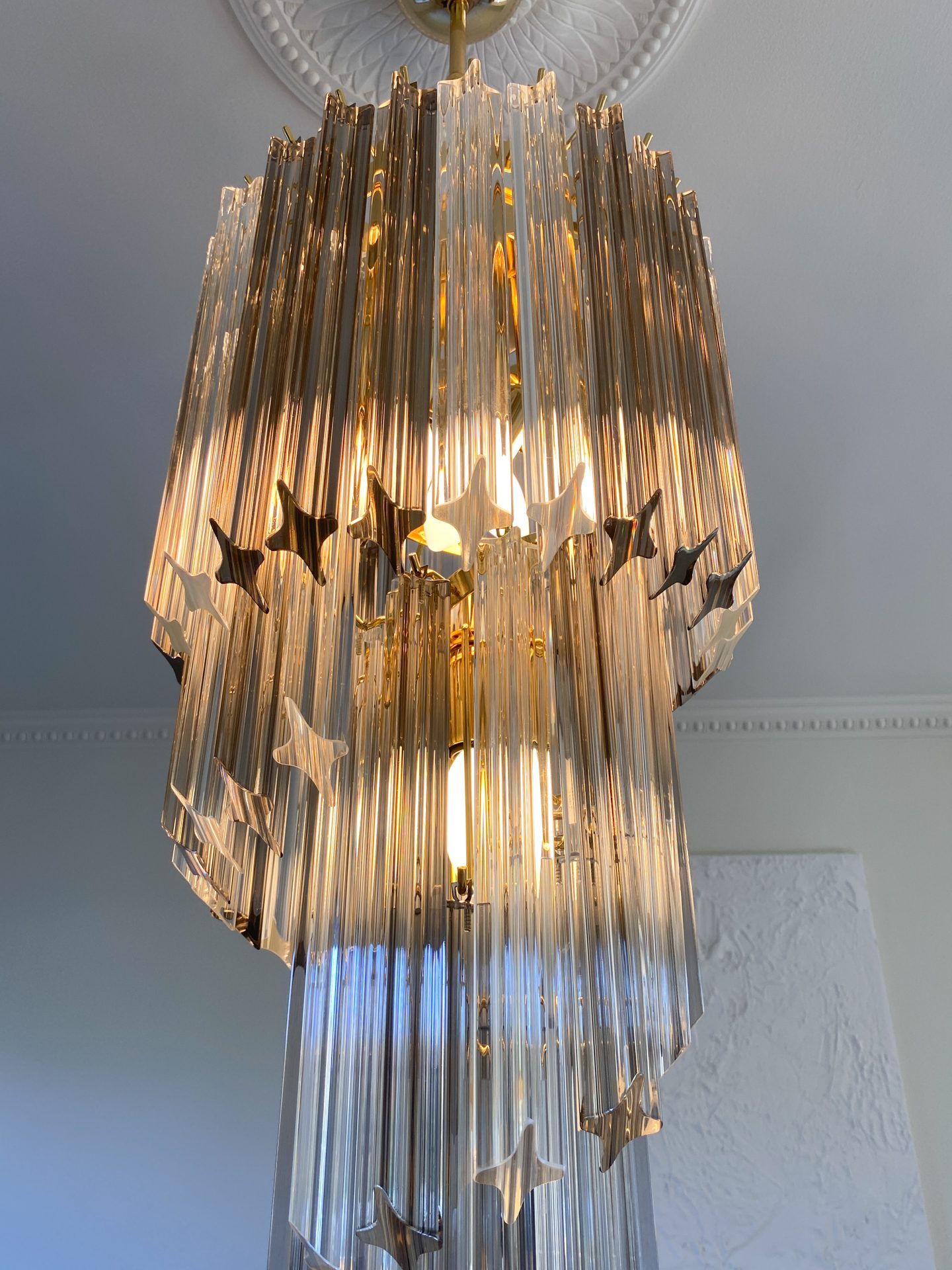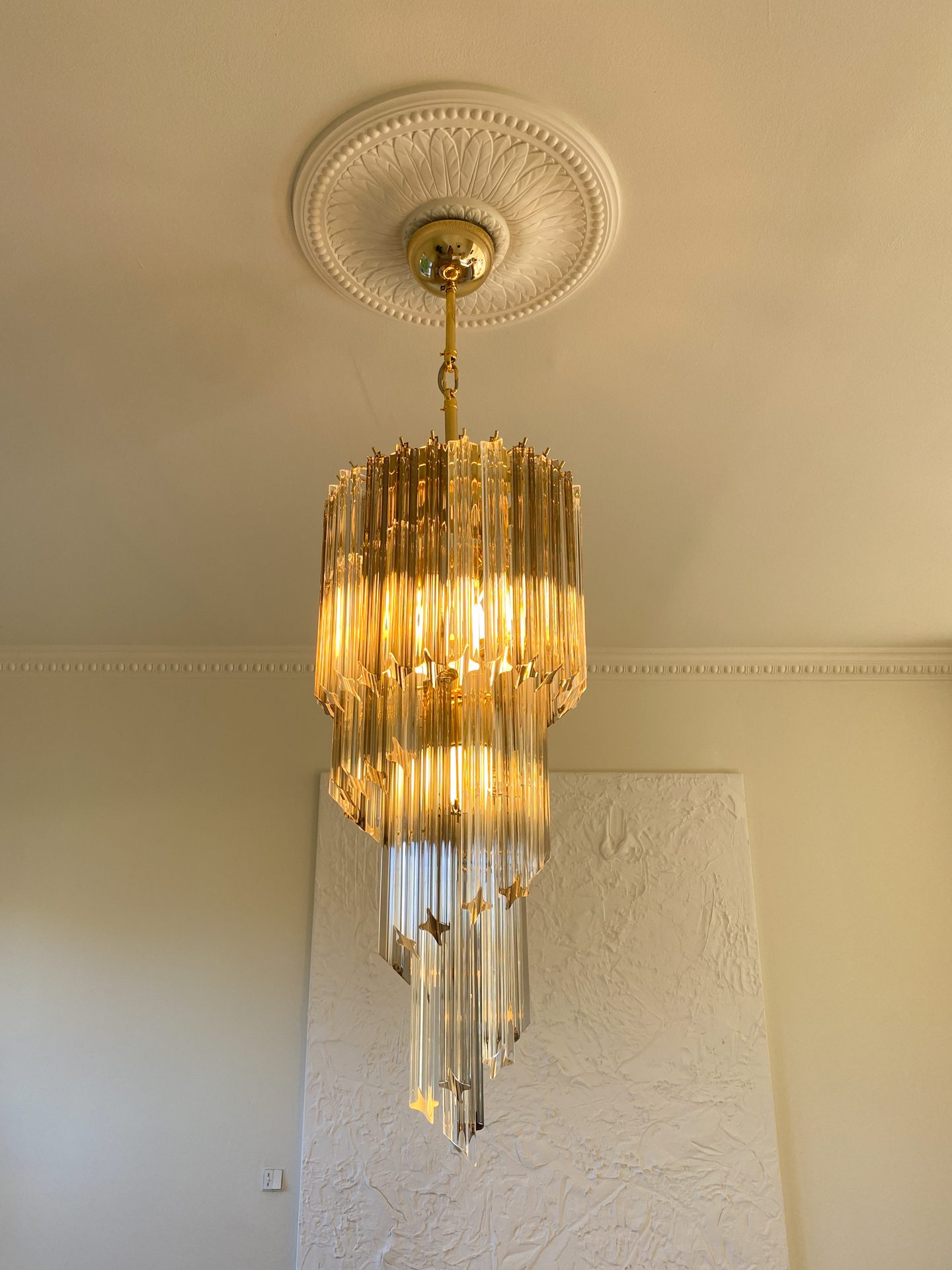 Murano ljuskrona – Spiral – 54 prismer – Rökig/Klar