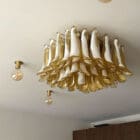 Murano taklampa – 64 kronblad – Rosa/Vit