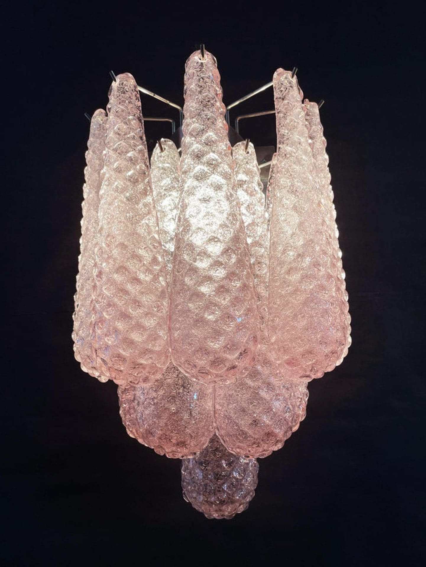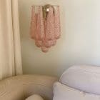 Fantastiskt Murano-vägglampa gjorda av 10 handgjorda rosa glasblad (transparent kristall, slät på utsidan, med kristallpulver och sedan grov inuti) i en förkromad ram.